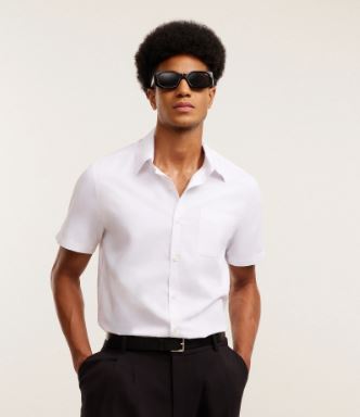 Camisa Regular em Tricoline com Fibra de Bambu Abotoamento e Bolso Branco